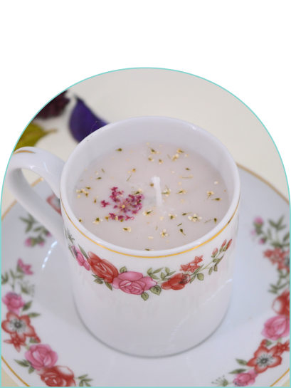 My SOY CANDLES are focused on recyclying teacup, saucers, glasses and other ceramics. I personally select pre-loved items from a number of local sources, resulting in some antique, unusual and one of a kind candles.